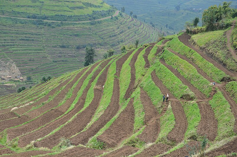 Meanwhile, the three radical terraces’ sites visited in Rubavu District are Mutanda with 82.05 hectares, Gahunga with 26.52 hectares and Mariba with 5.6 hectares where 90% of the terraces are protected with Kikuyu grass, agroforestry trees and shrubs.