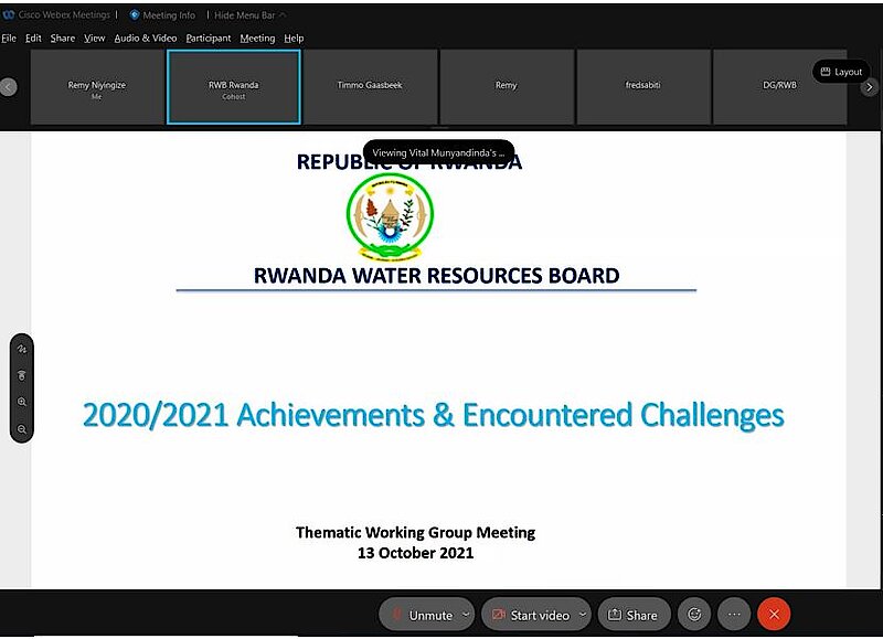 13th October 2021 - The Rwanda Water Resources Board (RWB) and various stakeholders in the water sub-sector held a virtual Thematic Working Group (TWG) meeting to discuss the achievements and challenges for the 2020-2021 fiscal year, key policy related studies for the 2021-2022 fiscal year and key priorities for the next 2022-2023 financial year.