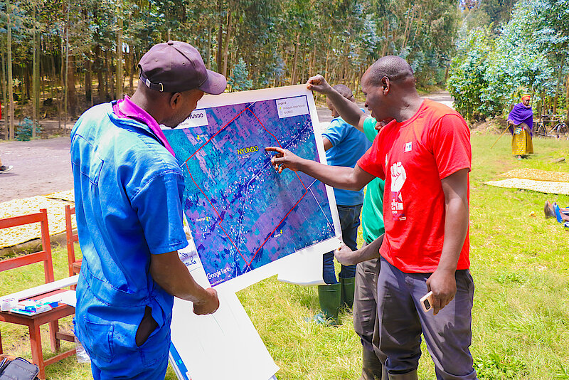 The Rwanda Water Resources Board is engaging citizens in the development of Village Land Use Action Plans as part of the implementation process of the Volcano Community Resilience Project.